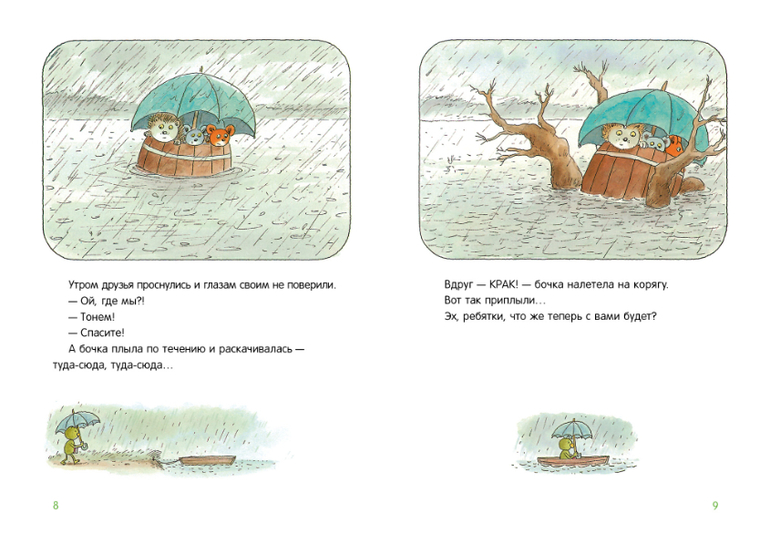 Книги детского автора и иллюстратора Татьяны Русситы именно такие! Маленькие, тонкие и с крупными буквами. Самые длинные слова в них состоят всего из четырёх букв, а акварельные рисунки прекрасно иллюстрируют короткие истории с неожиданными концовками. Даже если ребёнок знает ещё не все буквы алфавита, не беда. Увлечённый сюжетом, он довольно быстро сможет сложить их в простые слова.