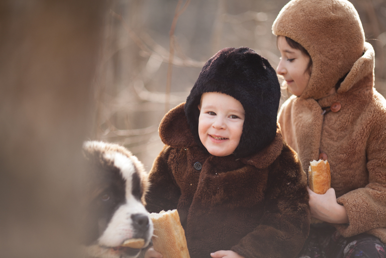 Дети и щеночек сенбернара!
