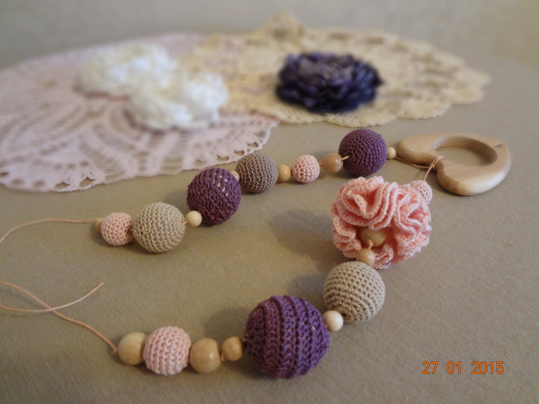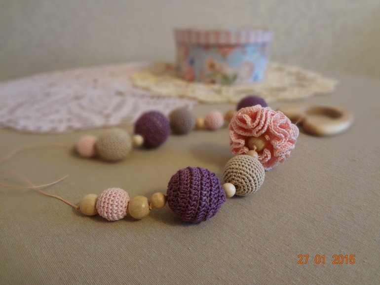 Слингобусы - или игровые бусы - это одновременно игрушка для малыша, который катается в слинге или просто у мамы на руках, и оригинальное украшение для мамы. Их можно трепать, тянуть, грызть, они отвлекут малыша в очереди к врачу, на прогулке, в магазине. Их можно стирать. Подобрать к любой одежде. Для крохи они служат еще и прорезывателем зубов.Делаются исключительно из натуральных материалов - можжевеловые бусины, нитки х/б.