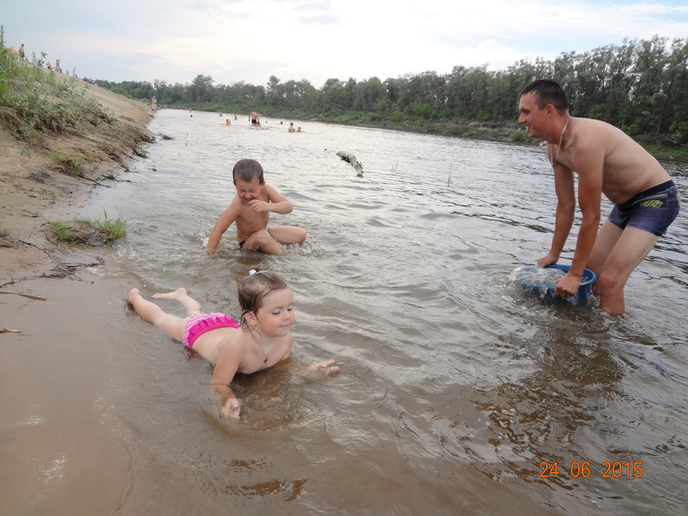 Ездили купаться на речку,детей было не вытащить из воды,накупались вдоволь)))