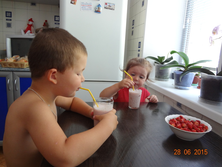 Ездили в деревню,собрали ведра клубники с поля,наварили варенья,зимой будем кушать)))
