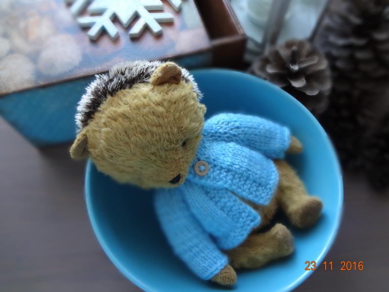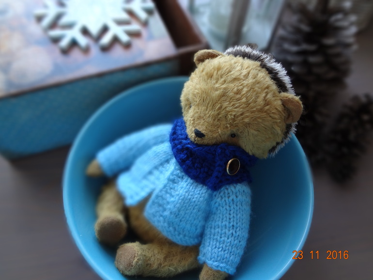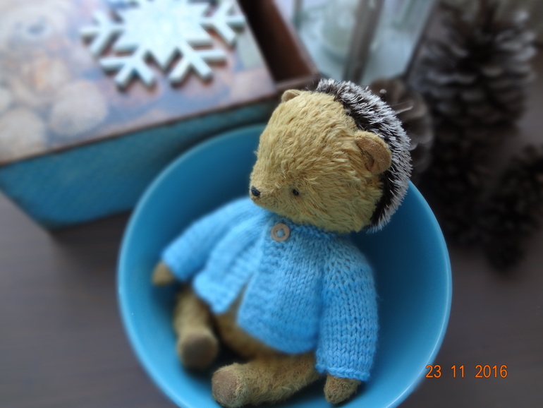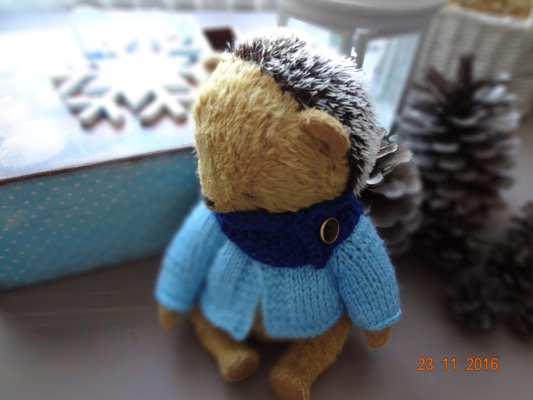 Ежик тедди друг мишки тедди. Сшит из ежикового мохера и вискозы Шульте. Шплинтовое крепление,голова покачивается. Набит плотненько опилочками и металлическим гранулятом,приятно держать в руках. Одет ежик в теплую кофточку и снуд. Полностью ручная работа,сшит с большой любовью и теплом.