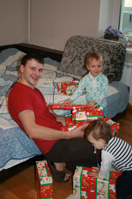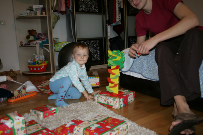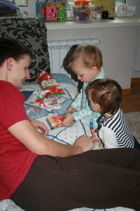 Арсений подарки открывать устал...Так что открыли не все и праздник растянулся на несколько дней))) Дети рады и мы вместе с ними. Слава богу!