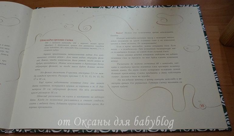 А если у вас есть много времени и 500 г. темного шоколада, вы можете попытаться соорудить шоколадно-ореховую ёлочку по приведенному в книге рецепту.