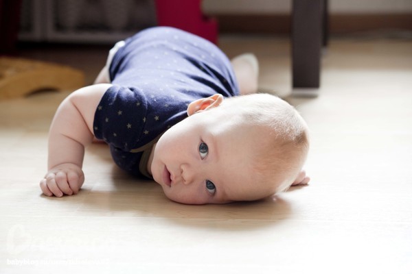 Ситуация такая: Тима спит (уснул у груди на диване, обложила его подушками), мы с Варей на кухне. Вдруг слышу, шуршит кто-то чем-то. Захожу в комнату - сынок на полу ползает, упаковку с влажными салфетками открыть пытается. И не пискнул, разведчик!