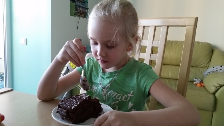 ВАря тоже любит шоколадный торт, как её папа и очень расстраивается, если бабушка печёт медовый. Она его кушает конечно, но без энтузиазма )