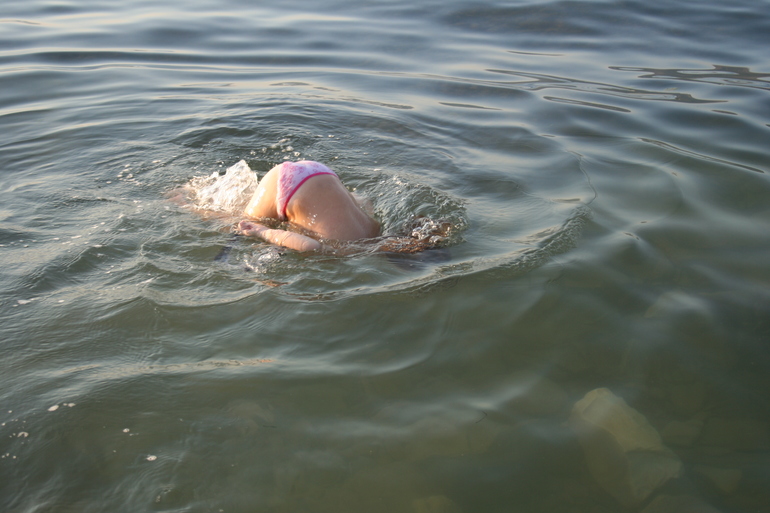 Так что, наша любовь к морю имеет долгую историю, поэтому мы с мужем ждали, что еще в прошлом году дочка поплывет. Но три года - непростой период, появляются страхи, в том числе и опасения перед глубиной, которые удалось перебороть только к этому сезону. И вот к середине лета Камилла уже прекрасно плавала под водой, лежала на спине, ныряла в глубину и надолго задерживала дыхание...
