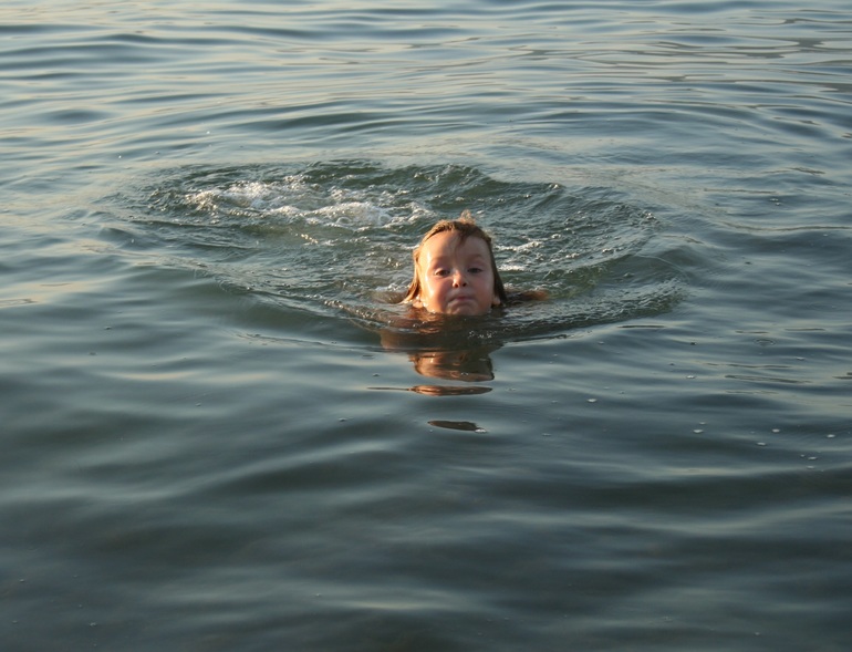 А теперь поплыла уже и над водой! В июне, посещая Дельфинарий, мы с ней договорились, что если в этом году, она научиться плавать, осенью мы вернемся сюда, чтобы поплавать с дельфинами. И именно так в ближайшее время мы и собираемся отметить это знаменательное событие.