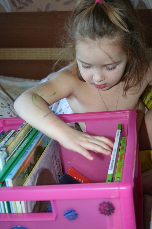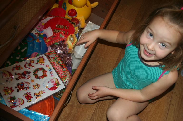 Еще ценным подарочком, лично я считаю, книги :-) Поэтому их было целых две - любимый Петсон, правда, осенний "Петсон грустит" и "Приключения новогодних игрушек". Для того, чтобы вручить их торжественно я придумала целую спасательную операцию по поиску ящика с книга, в который накануне сложила всю нашу зимнюю литературу, а сам ящик празднично украсила. Камилик нашла его достаточно быстро, а вот отыскать в нем новинки так и не смогла, все ей казалось, что она это уже читала :-)
