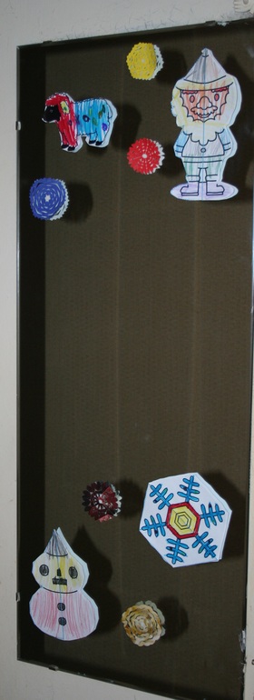 ....и украсила одну створку плакатом со Снегурочкой и наклейками.