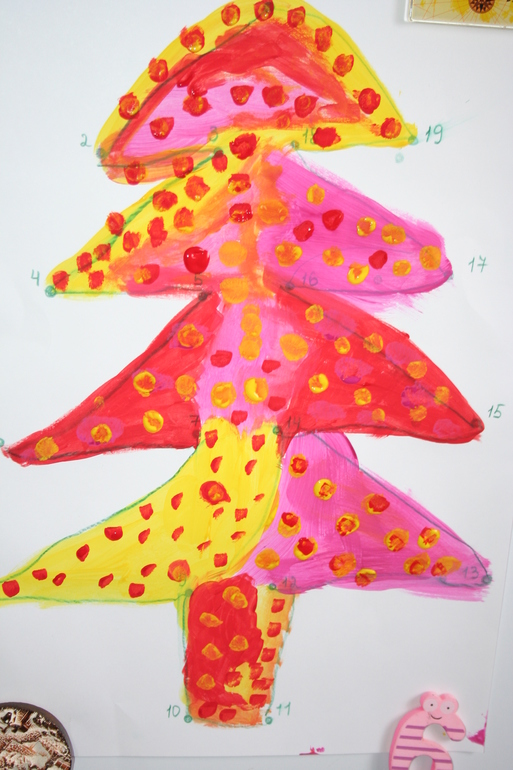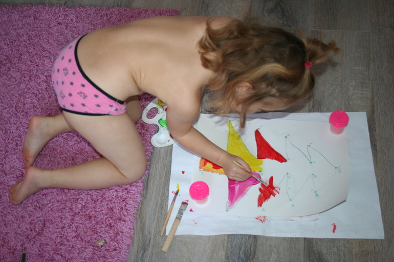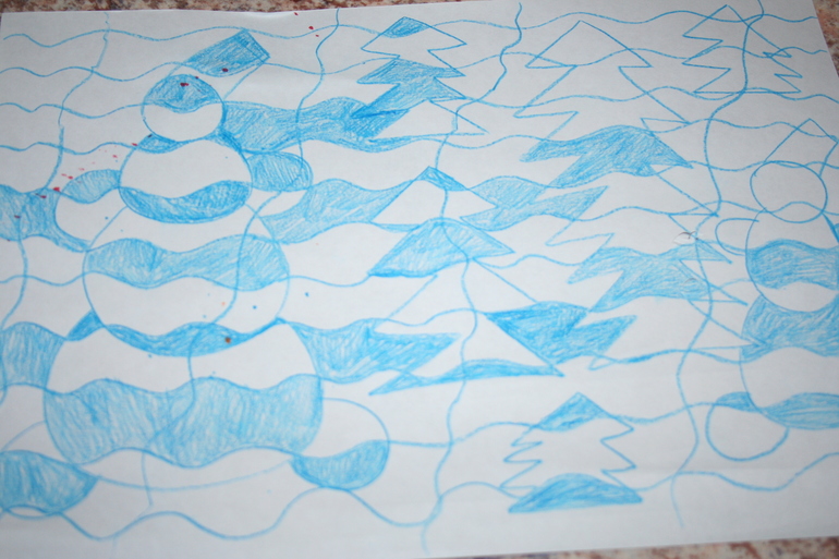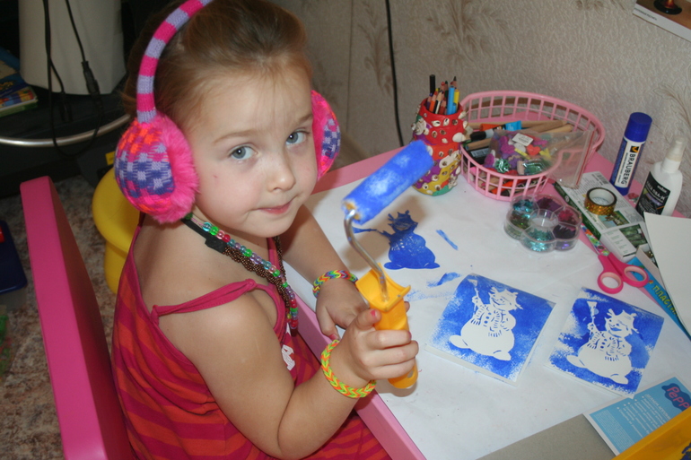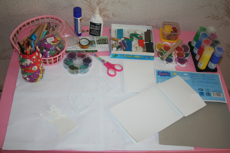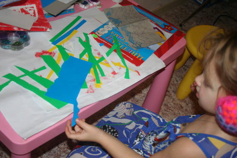 Маленькие снежинки остались с прошлого года, а все остальные красивости сотворила Камилик: и вырезала, и раскрашивала все сама! Было у нас и другое ТВОРЧЕСТВО. Одно из квестовых заданий привело Камика вот к такому столу...