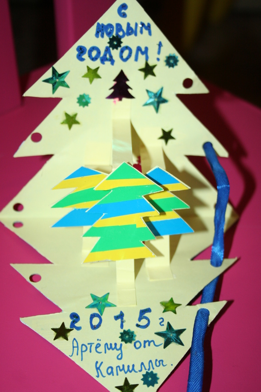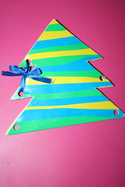 ....за которым мы удобненько устроились, чтобы радовать себя и своих друзей. Первой поделкой стала вот такая елочная аппликация.