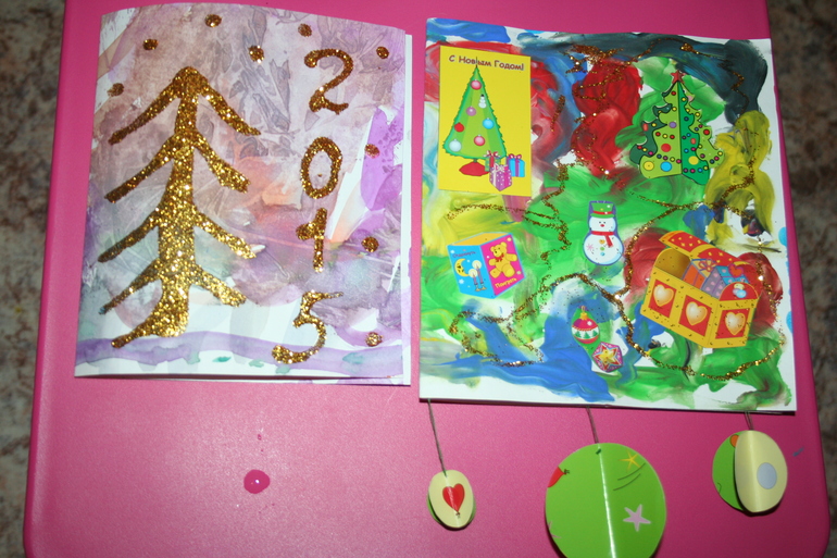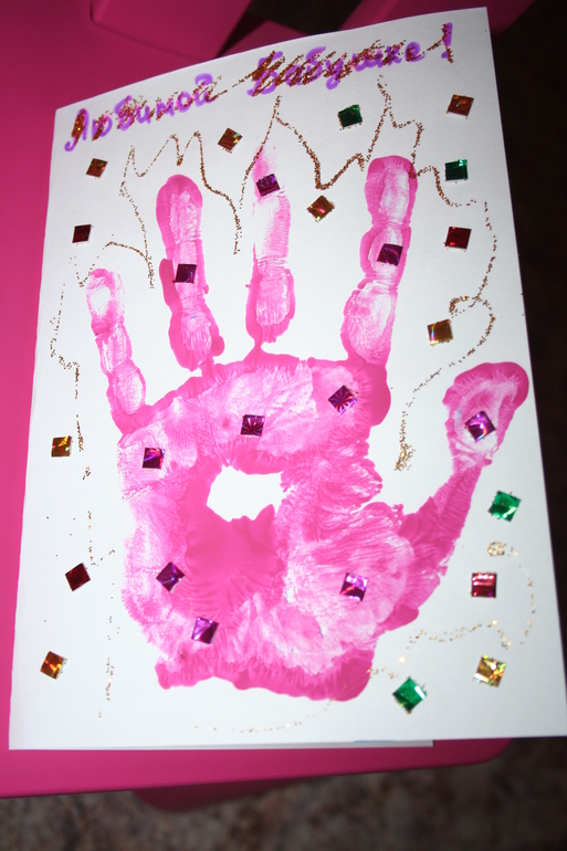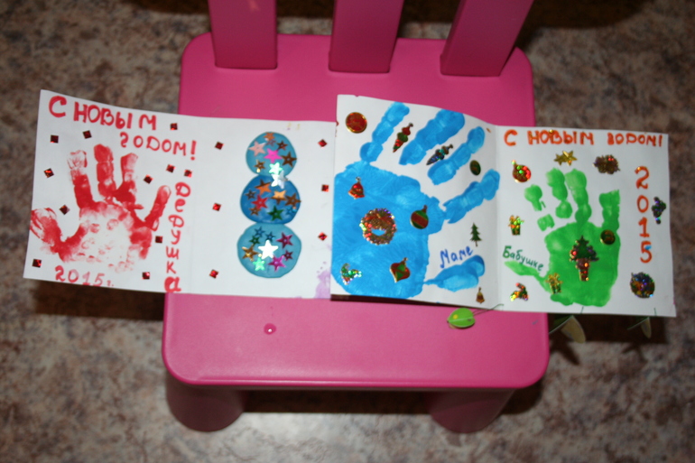 Остальные открытки мы делали, в основном, вместе, например, вот эти для вторых бабушки и дедушки :-)