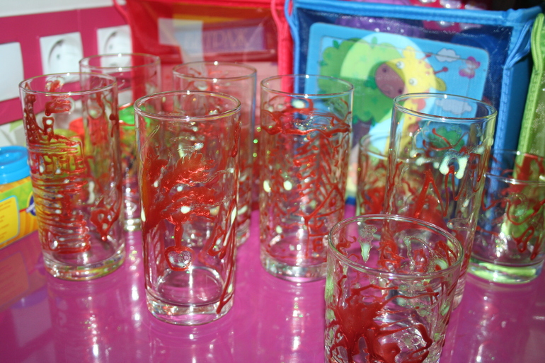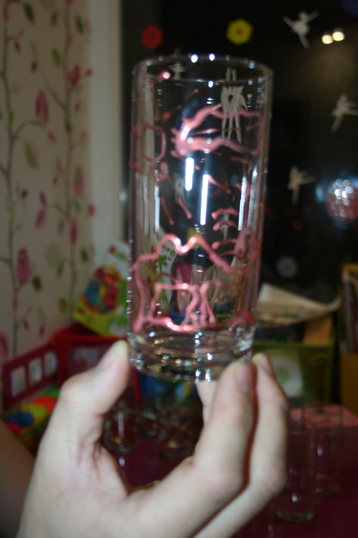 В то время пока мы с Камиком делали открытки, наш любимый мужчина занимался росписью подарочных стаканчиков. Очень он нас с дочкой удивил своими талантами, такое чудо получилось, аж, дарить не хотелось :-)
