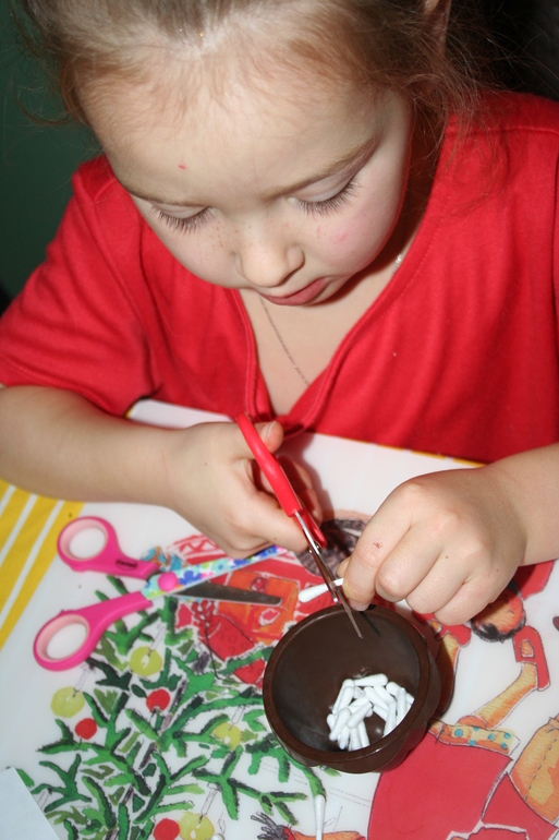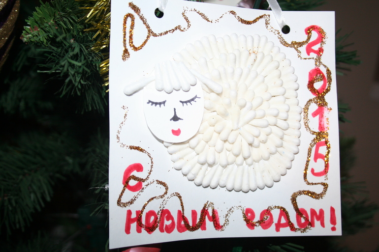 Тоже самое творилось и во время изготовления главного символа года! Зайка только кромсала ватные палочки, а клеить их к основе ни за что не соглашалась, но главное, ведь участие :-)