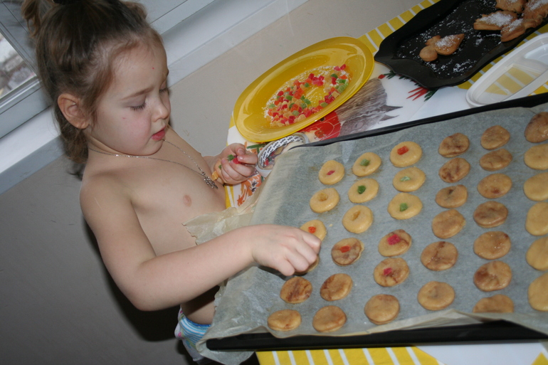 Еще мы с Камилкой очень активно творили и творим на кухне! У меня тут нежданно-негаданно работа появилась, но с такой помощницей я расправляюсь с ней за считанные часы :-)