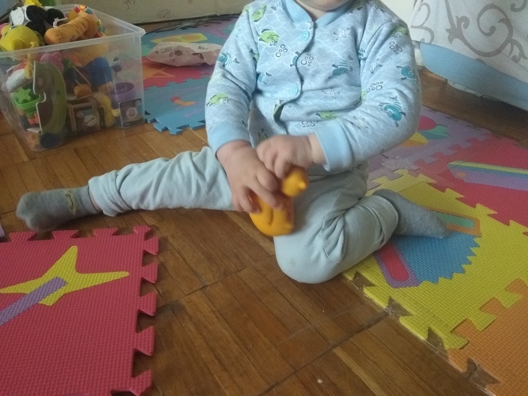 Сейчас нам 12 месяцев. Малыш с 9 месяцев стоял у опоры, а сел в 9 с половиной месяцев после массажа. Сидеть не любит