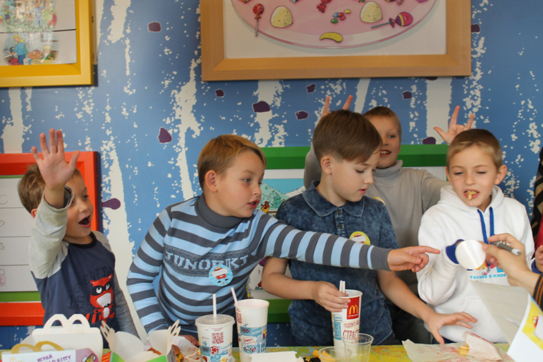 Собрали друзей-одноклассников, идем отмечать...в Макдак))))))