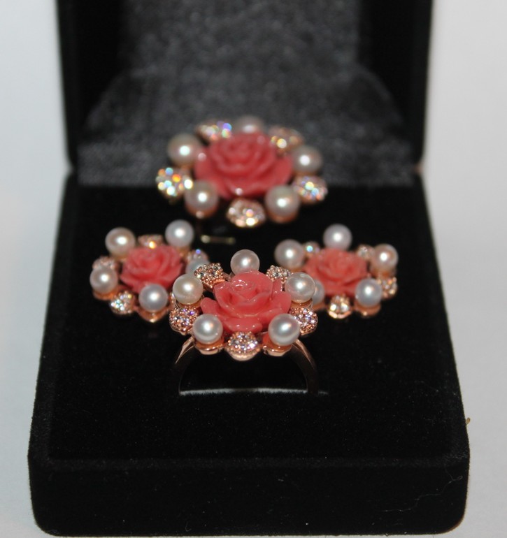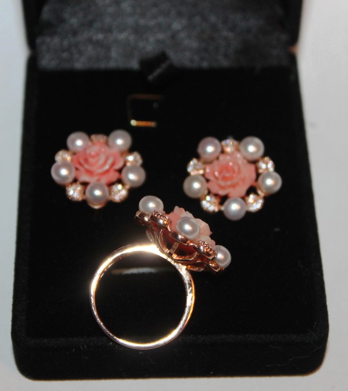 1. Комплект кольцо, серьги, подвеска. Вес 19,1 гр. Вставки жемчуг, цирконий, эмаль. Размер кольца 18,5 Цена 2600 руб