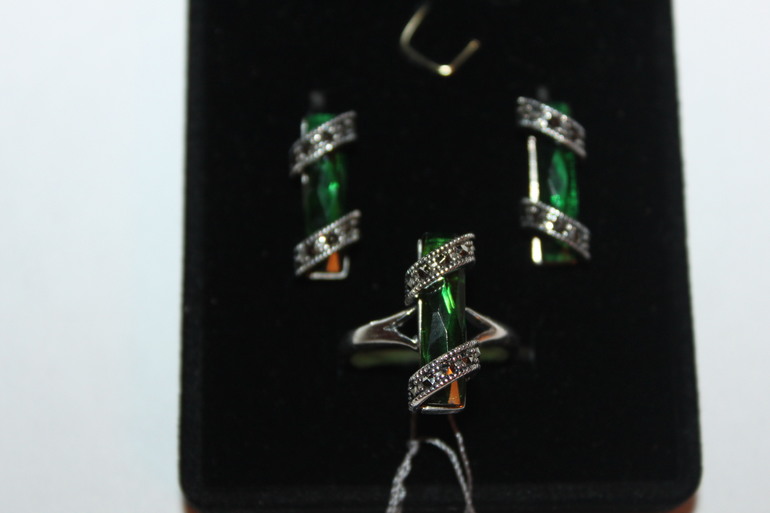 8. Комплект кольцо и серьги. Вес 13,3 грамма. Вставки цирконий и марказиты. Размер кольца 18. Цена 1600 руб