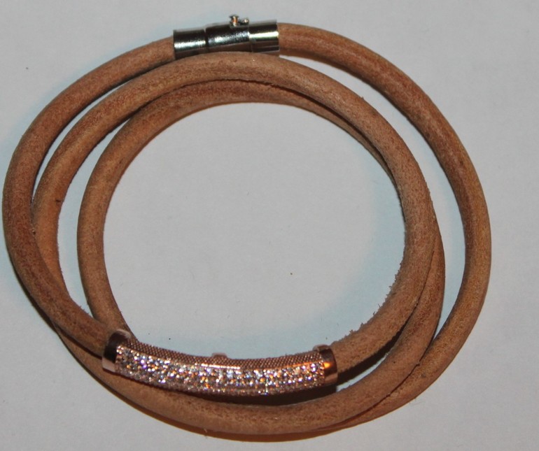 9. Браслет (натуральная кожа) + серебро. Вставки цирконии. Цена 1400 руб