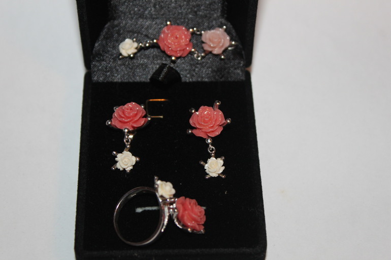 6. Комплект кольцо, серьги и подвеска Вес 18,3 грамма. Размер кольца 18,5. Цена 2500 руб