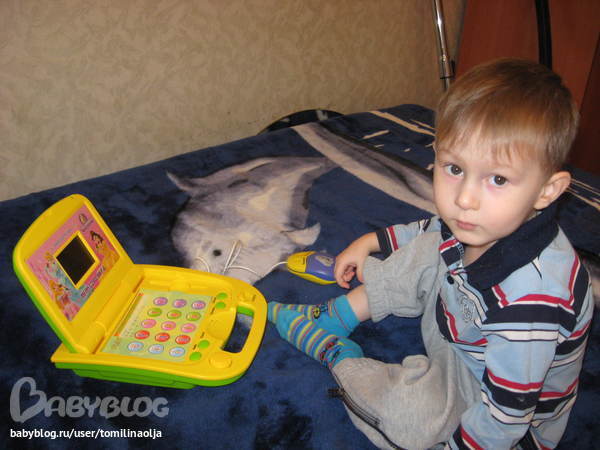 Бабушка уехала в Радужный, перед эти подарив Диме подарок - детский компьютер. Такая вещь классная, там 120 карточек, поставишь одну карточку и изучаешь определенную тему.