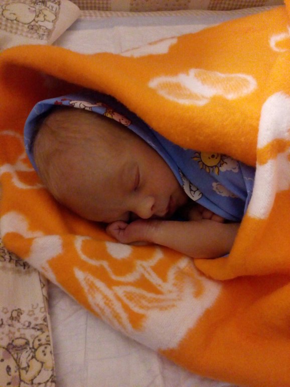 Шили меня еще минут двадцать пять, деть кричал в соседней комнатке, а я лежала и осознавала... Вот... девять утра, 22 февраля и я мать... Женщина-мать! Потом зашла доктор с моей маленькой гусеничкой, завёрнутой в розовую пелёночку. Он был крошечный-крошечный, сердитый такой и с беленькими волосами! Сказали: "Мальчик, живой. Внешних патологий нет, всё в порядке, просто он очень худенький". Доктор говорила тихо, уверенно и по-доброму. Дали мне его поцеловать и унесли. Позже я узнала, что оценили его в 7/8 баллов. Мальчик. Живой, 45см и 2280гр. Сам закричал. Спасибо тебе, моя Вселенная!