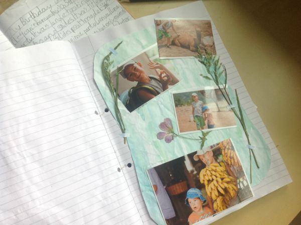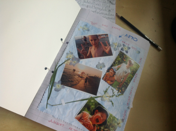 Задумка была сделать летнюю книгу, но похоже, что она трансоформируется у нас в большую сезонную книгу. Посмотрим, как пойдеь. Недели две мы делали заготовки. Дети еще не знали, к чему я клоню. Я и сама не знала, на сколько получается большой проект. Тут будут фото, картинки и воспоминания. С воспоминаниями совсем туго идет, Андрюша ленится писать, а мне так нравится его почерк и стиль изложения. Буду выпытывать по-маленьку. Сегодня написал про День Рождения. Фух) вообще детей ненамного хватает, конечно. Мы сделали пару страниц, они устали и убежали. Лишь бы у меня терпения хватило))