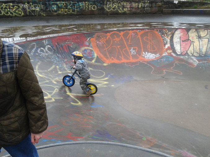 Рядом с музеем большой парк, но нам посчастливилось, было охренеть как холодно и мерзко, и нам выдалась возможность погонять, где обычно тусует молодежь. Мелким там делать нечего))
