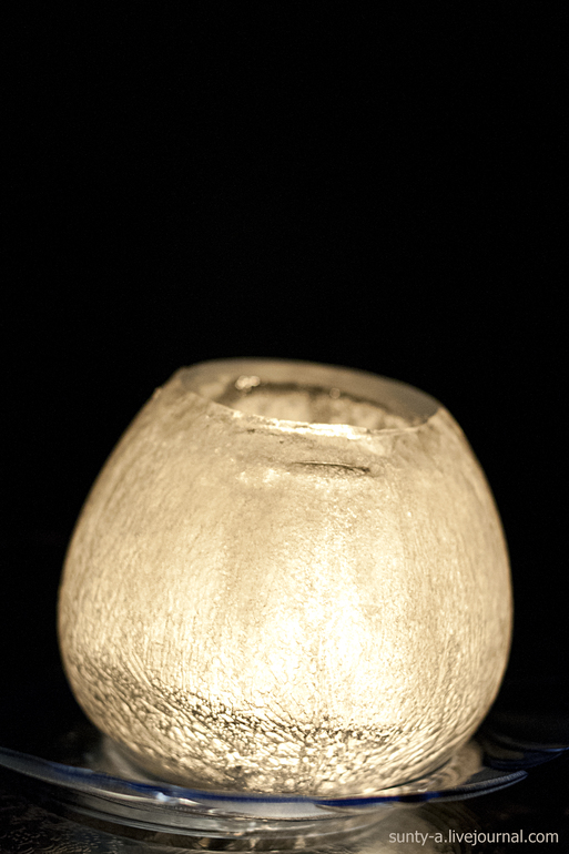 Заливаете в шарик воду и ставите на мороз, часа на 4, чтобы сердцевина сама не замерзла. Достаете, вскрываете в ванне, выливаете и подсвечник готов. Его хватает примерно на полчаса-час, в зависимости от толщины стенок и свечки.