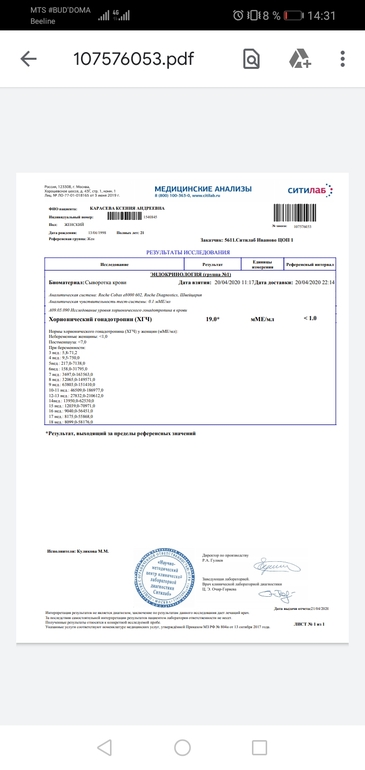 Девочки что думать не знаю год назад была внематочная с удалением трубы это была моя первая беременность (год назад) в этом месяце начала делать тесты за два дня до задержки (беременность плонируем) и тесты начали показывать вторую очень слабую полоску я думала что это реагенты и здала хгч пока ждала результаты я решила сделать цифровой тест он положительный 1-2 недели но когда я увидела результаты хгч я начала переживать нормально ли это генеколог не чего путнова не сказала только дала таблетки и сказала 5 мая сделать узи и ищё раз хгч а 7-8 придти к ней, но до этого времени я сойду сума подскажите это нормально ли?