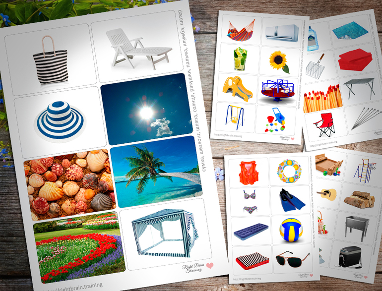 Большой комплект ярких летних карточек для игр на развитие памяти