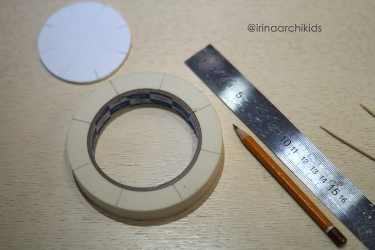 Далее нам нужно вставлять шпажки в нижнее основание на месте разметки. В верхнюю окружность вставляем со смещением - в нашем примере мы смещали на три точки.
