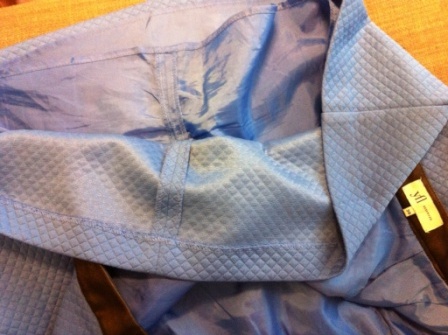 На подкладке, кожаный пояс, с потайными карманами в боковых швах.
