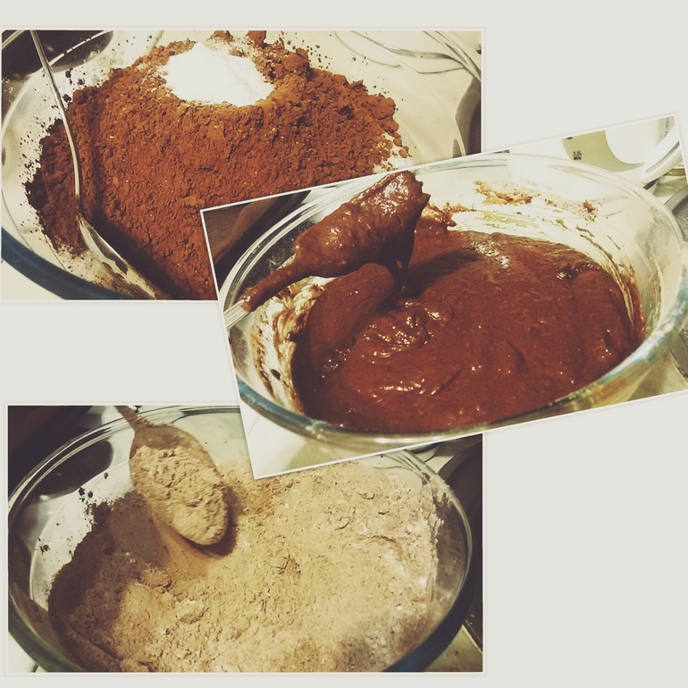 1.Смешать в чашке все сухие ингредиенты, туда же добавить масло и воду, перемешать. 2.Выложить в форму и в разогретую до 180 духовку на 40 мин.