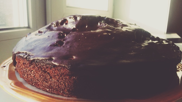 Глазурь: 6 ложек какао+4 ложки сахара+10 ложек растительного масла+8 ложек воды и на минуту на огонь.