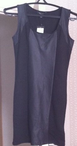Платье трикотажное, со вставкой впереди из блестящей ткани, имитирующей кожу. Маркировка=36. Абсолютно новое! Было куплено на мероприятие и не пригодилось. Все мерки указаны на отдельном фото.
