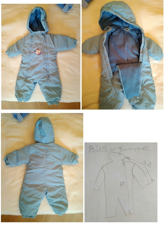 - Комбинезон осенний. Примерно на год. Классная вещь! Не продувается, подкладка х/б - ребенок не потеет.
