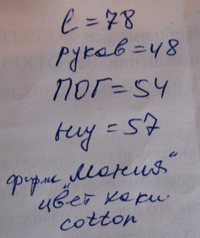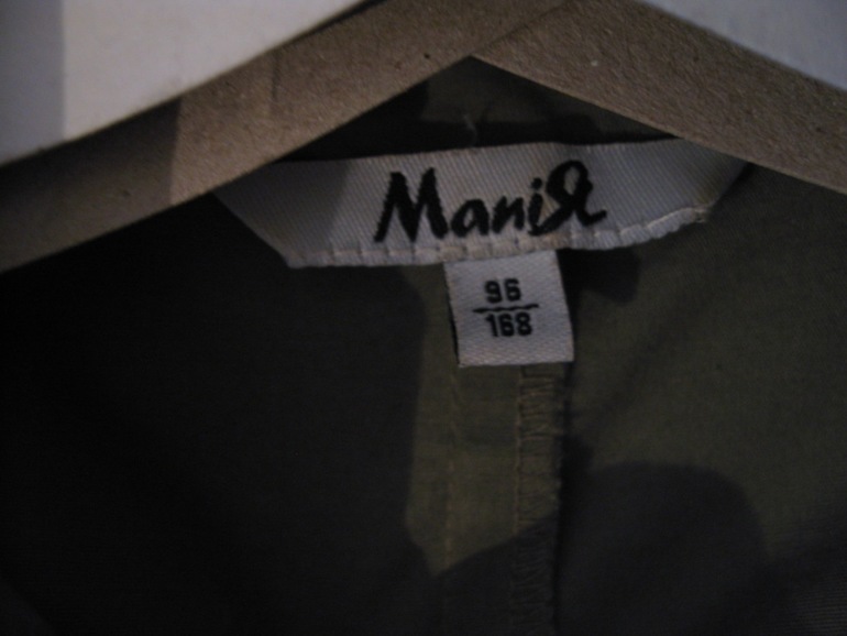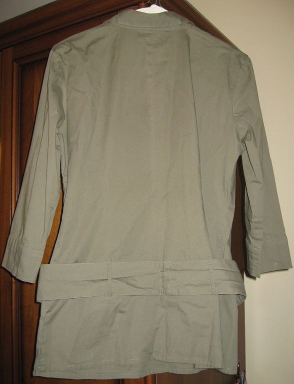 Моднючая штучка! Покупалась в Москве в фирменном магазине за 1900. Не носилась-оказалась мала. Цвет хаки, 100% хлопок, широкий пояс -на заниженной талии, снимается. Рукав ¾. Размеры: длина=78см, ПОГ=54см, ПОБ=57см, длина рукава=48см