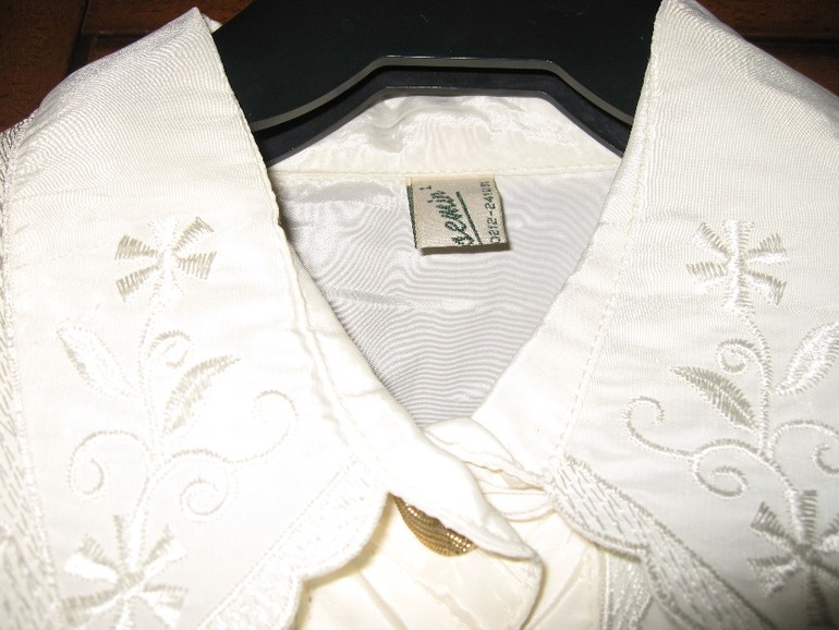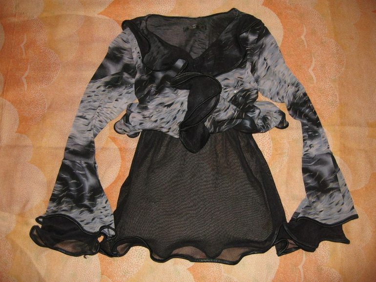 Блузка надета один раз - оказалась мала. Состояние идеальное. Выглядит шикарно. Интересный фасон, длинная, расшита. На высокий рост.