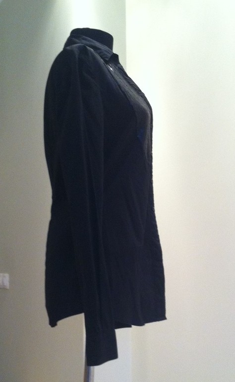 Ткань-типа креп, 50%-хлопок+синтетика. Рукав ¾. Размеры: плечо=13см, длина=63см, под мышками по спинке=52см, длина рукава=44см, отворот=11см