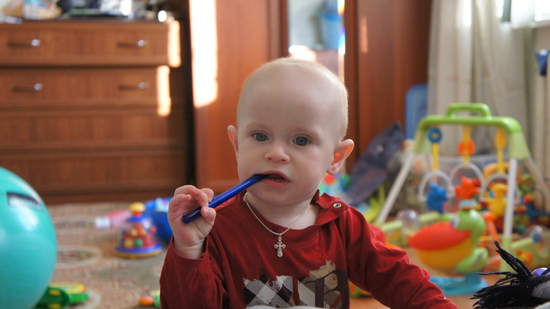 В этом месяце Елисей стал ловчее пить из поильника и бутылок - теперь сам их берет, держит. Легко берет мелкие детали пинцетным захватом.