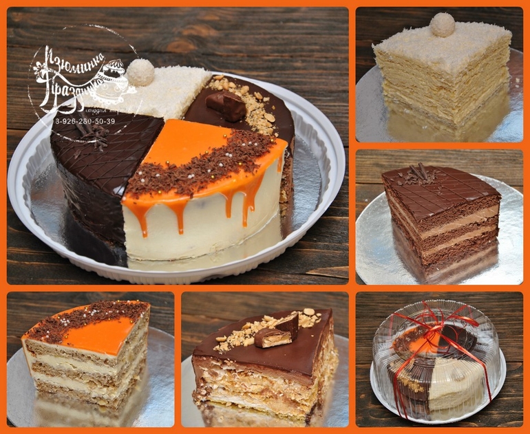 1. Торт Колибри - пряные коржи с кусочками ананаса и бананом, крем-чиз, зеркальная глазурь