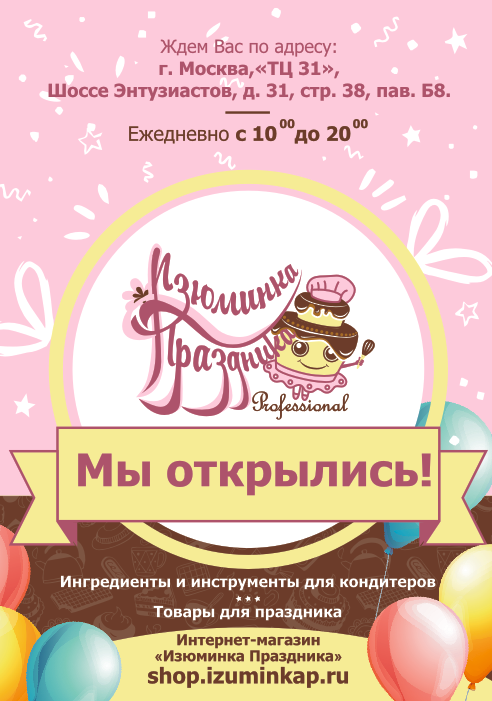 Команда интернет-магазина Изюминка Праздника - кондитерские ингредиенты и инструменты для профессионалов и любителей, поздравляет вас с Наступающим Новым Годом и Рождеством!