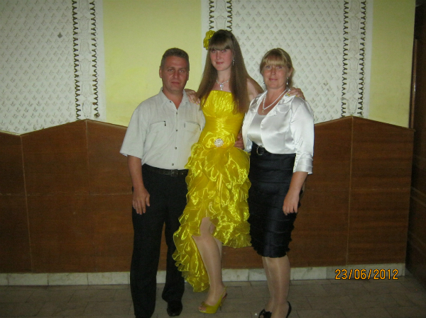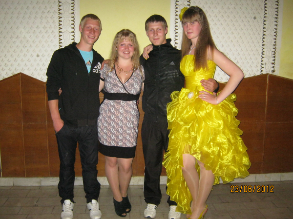 Выпускной у сестры, сверху Катя с папой и мамой, снизу я , катя и двоюродные братья Влад и Миша