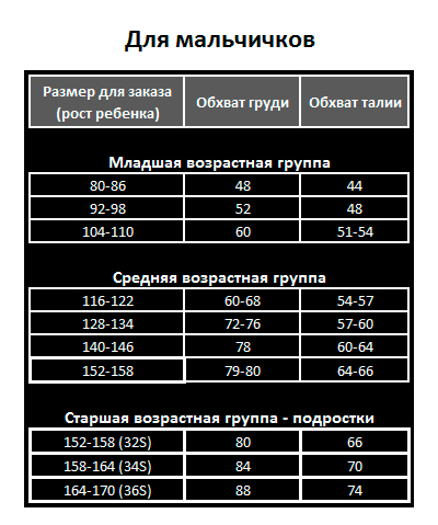 Доступные размеры:80-86, 92-98, 104-110, 116-122, 128-134, 140-146, 152-158