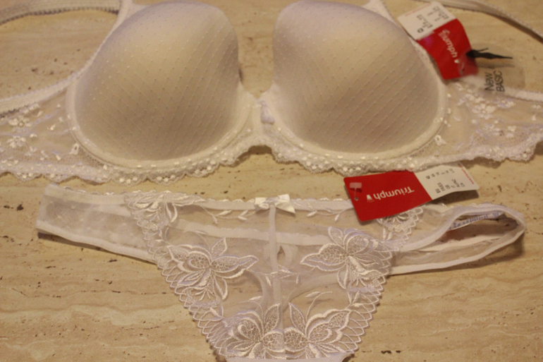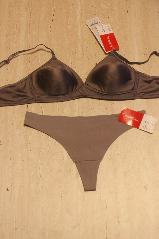 Бюстгальтер Триумф. Размер UE80А, цена 700 рублей. Стринги Триумф бесшовные, размер EU 38 (44RU) , цена 350 рублей.