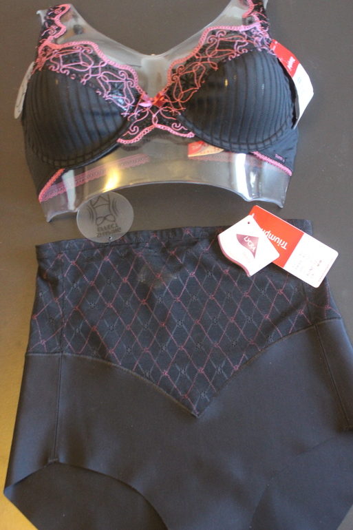 23.Триумф. Бюстгальтер размер 80С. Цена 700 рублей. Трусы корректирующие Размер EU 40 (46 RU), цена 750 руб.