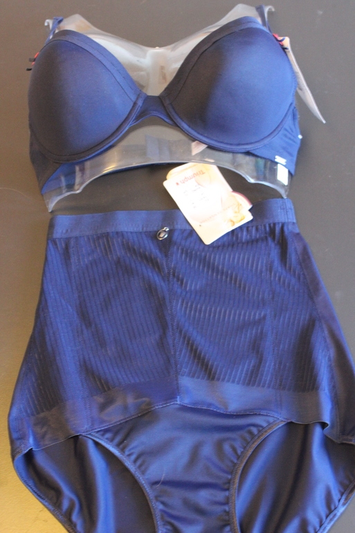 11. Бюстгальтер BeeDees размер 75В с поролоном, 500 рублей. Трусы корректирующие Триумф размер EU38 ( наш 42-44), 750 рублей. Цвет: темно-синий.